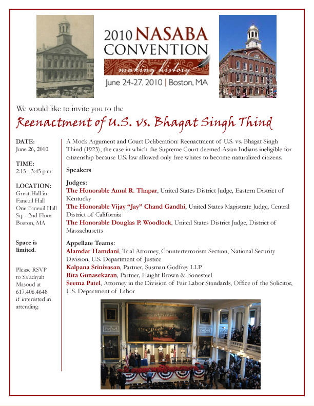 Reenactment of U.S. vs. Bhagat Singh Thind